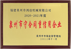 喜訊!鴻佳機(jī)械同時(shí)榮獲泉州市、南安市2020-2021年度“守合同重信用企業(yè)”榮譽(yù)稱號(hào)